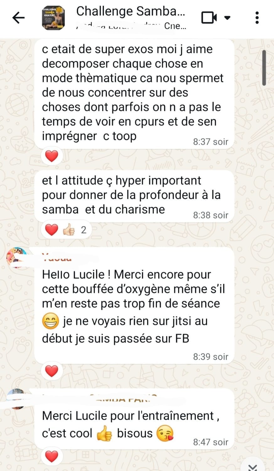 Ceci sera la seule fois que je limiterais le groupe à 10 participantes.